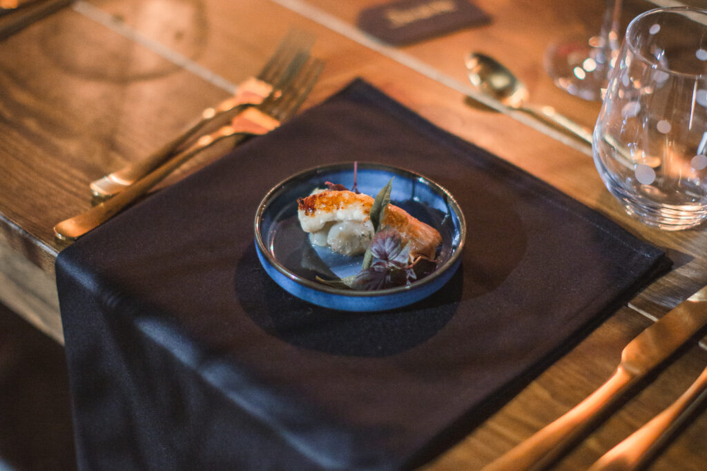 Lors de ce mariage en extérieur, les tables en bois brut apportaient chaleur et authenticité, tandis que les chaises dos croisé structuraient l’espace avec charme et légèreté. Le noir, intégré à travers les bougeoirs, la vaisselle, les serviettes et certains éléments floraux, créait une atmosphère à la fois sophistiquée et enveloppante.